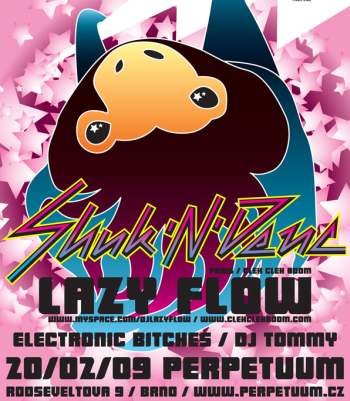 V pátek 20. 2. probíhá v klubu Perpetuum další z řady veselých večírků Shuk’n’Denc v režii Electronic Bitches DJs a s exklusivním hostem z Paříže jménem Lazy Flow, který patří do kategorie mladých a průbojných talentů, jež se už stihli uvést do síně slávy britského BBC Radio 1, kde pravidelně znějí z éteru jeho vtipné tracky.