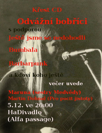 se koná koncert legend brněnské scény 80. let a současně proběhne křest CD „Odvážní bobříci”.