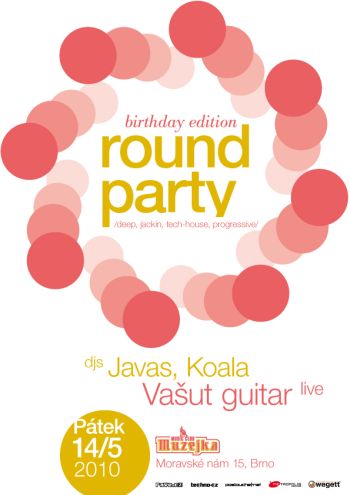 Šesté pokračování večera Round Párty vás v pátek 14.5. opět uvede do stavu relaxace a potřebného uvolnění. V klubu Muzejka obstarají svůj večer bráchové Javas a Koala, aby jako vždy představili něco z jejich aktuální hudební sbírky. Mezi „bros“ duo pravidelně vystupujících přibyl další rodinný člen Javasova klanu, a to Vašut, který popadne svoji oblíbenou kytaru a chopí se role živě jamujícího hráče. Ještě je zajisté určitě dobré vědět, že minule oslavil narozeniny DJ Koala a tentokrát je pro změnu zase oslavencem DJ Javas.