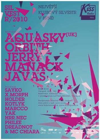 • Dlouho jsme přemýšleli, jak letošního Silvestra na Flédě vyšperkovat, ozvláštnit. Když se podíváte na letošní lineup, tak jasné jsou hned dvě velké změny. Tou první je bezesporu “klenot” v lineupu, vzácní hosté z Londýna, britští Aquasky! A ta druhá vyplývá z letní rekonstrukce, která dala vzniknout druhé, plnohodnotné stagei. Ta bude letos poprvé plně v režii zlomených rytmů, což v případě Brna rovná se Sayka, Redrumu a Pohon crew.