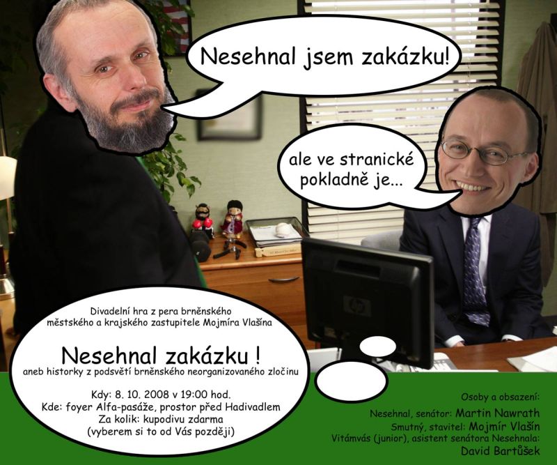 Přijďte všichni shlédnout další divadelní kus z pera Mojmíra Vlašína