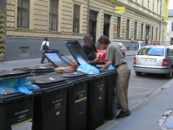 Nikoliv, to jen bezdomovci hodují z přebytků DELVITA CITY. Děkujeme, odejděte. Nebo si alespoň ty popelnice dejte před svoji kavárnu, před svoje zlatnictví. Nechápu, kde bere DELVITA CITY tu drzost, obtěžovat starousedlíky brněnského středu svými výkaly a s nimi spjatými atrakcemi, jako je kupříkladu ta na obrázku. Zápach se nám vyfotit nepodařilo.