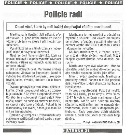 btw. osobne si myslim, ze “dospievajuci” by hulit nemali, aspon kym budu mat dost rozumu na to, aby to dokazali nejak rozumne chapat a regulovat, lenze takymito lzami policia dosiahne akurat to, ze bude kazdemu na posmech. Zaujimalo by ma, ktory “expert” to skoncipoval 🙂