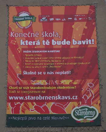 Mnozí z vás si zajisté všimli obrovského banneru na vysokoškolských kolejích Masarykovy univerzity na Kounicově ulici. Tento banner v nás vyvolává řadu otázek. Je v pořádku umístit reklamu na Starobrno na ubytovnu pro studenty? Co si o tom myslíte vy?