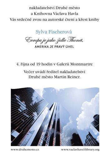 Společenská rubrika Autorské čtení a křest knihy Sylvy Fischerové Nakladatelství Druhé město a Knihovna Václava Havla Vás srdečně zvou na autorské čtení a křest knihy Sylva Fischerová – Evropa je jako židle Thonet, Amerika je pravý úhel 4. října od 19 hodin v pražské Galerii Montmartre. Continue Reading Previous Tradiční kuchyně jesenických hor provoní rozhlasový éterNext Hlasování o ceně veřejnosti soutěže o Národní ceně za studentký design 2012 Další články z Brna Společenská rubrika Tipy na výlet jižní morava ZOO BRNO recenze Služby Společenská rubrika Tipy na výlet jižní morava Zajímavá místa Papilonia – motýlí dům Brno recenze Festivaly Společenská rubrika Tipy na výlet jižní morava Ignis brunensis vyhlídková místa 2025 Napsat komentář Zrušit odpověď na komentářVaše e-mailová adresa nebude zveřejněna. Vyžadované informace jsou označeny *Komentář * Jméno * E-mail * Webová stránka Uložit do prohlížeče jméno, e-mail a webovou stránku pro budoucí komentáře. Time limit is exhausted. Please reload the CAPTCHA. 1 + 4 =