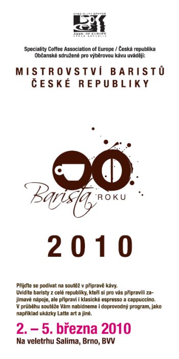 Již zanedlouho provoní brněnské veletrhy výběrová káva. Nový pavilon P zažije 4 dny plné skvělé kávy a těch nejlěpších baristů z republiky. Chystá se soutěž Barista roku 2010. Pokud máte čas, přijďte se podívat. Nebo si dokonce zasoutěžit.