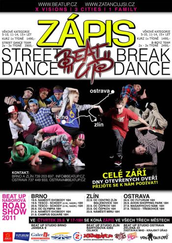 Náborová road show do kurzů street či break dance začíná 19. září v 16 hodin na náměstí Svobody a v 18 hodin u Tesca, na schodech u hlavního nádraží. Následující den 20. září pokračují ukázky od 16 hodin opětu u Tesca a od 18 hodin v obchodním centru Olympia. Poslední ukázky mohou diváci zhlédnout 21. září v 16 hodin na náměstí Svobody a závěr v 18 hodin v Campus Square.