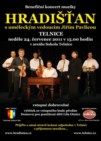 • V rámci Telnického kulturního léta zve obec Telnice na benefiční koncert známé muziky Hradišťan s uměleckým vedoucím Jiřím Pavlicou v areálu telnického Sokola v neděli 24. července od 15 hodin.