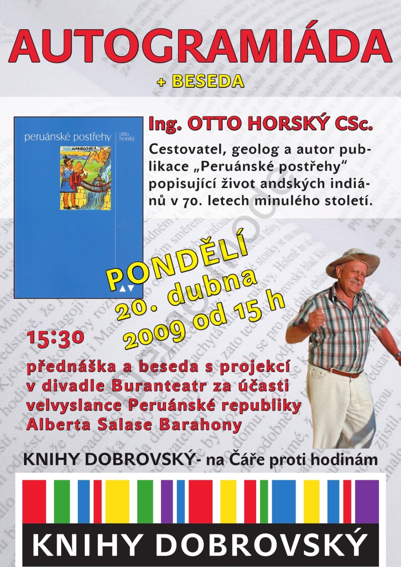 V pondělí 20. 4. 2009 od 15 hodin se v našem knihkupectví KNIHY DOBROVSKÝ na Joštově ulici 6 uskuteční Autogramiáda a beseda Ing. Otto Horského, cestovatele, geologa a autora publikace