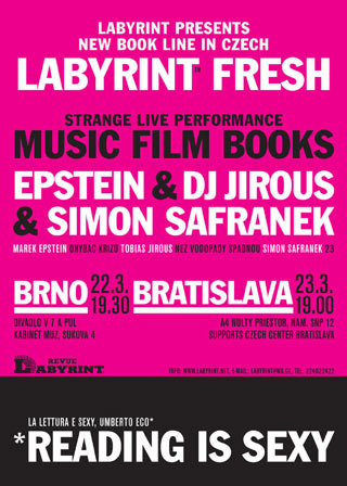 Nakladatelství Labyrint Vás srdečně zve na středu 22. 3. v 19.30 do Divadla v 7 a půl na FRESH – multižánrový večer nakladatelství Labyrint – vystoupení tří mladých autorů edice Fresh – autorské performance.