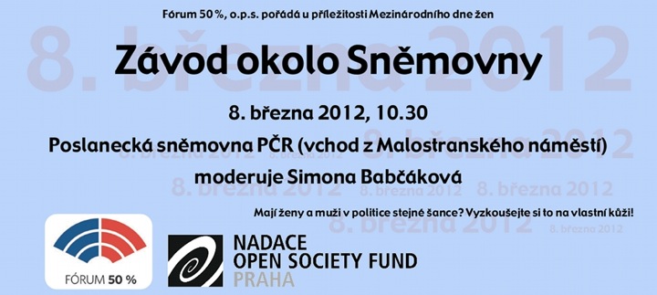 Stejně jako v roce 2008 zde proběhne symbolický závod kolem Sněmovny. Cílem happeningu je upozornit na nedostatečné zastoupení žen v české politice. Závodit se bude o místa na kandidátkách.