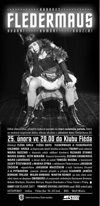 Autorský kabaret, vycházející z tradic předválečných, přitom akceptující moderní nejen divadelní žánry, který je tvořen silným autorským česko-slovenským týmem zkušených divadelníků – Zuzana Kronerová, Richard Stanke, Marie Ludvíková, Marek Daniel, Jakub Žáček, Jana Plodková, Václav Neužil a mnoho dalších, za doprovodu orchestru Mária Buzziho, v režii J. A. Pitínského a kolektivu. Tanec i choreografie v provedení Fléda Girls. Speciální efekty Ivan Martínek.