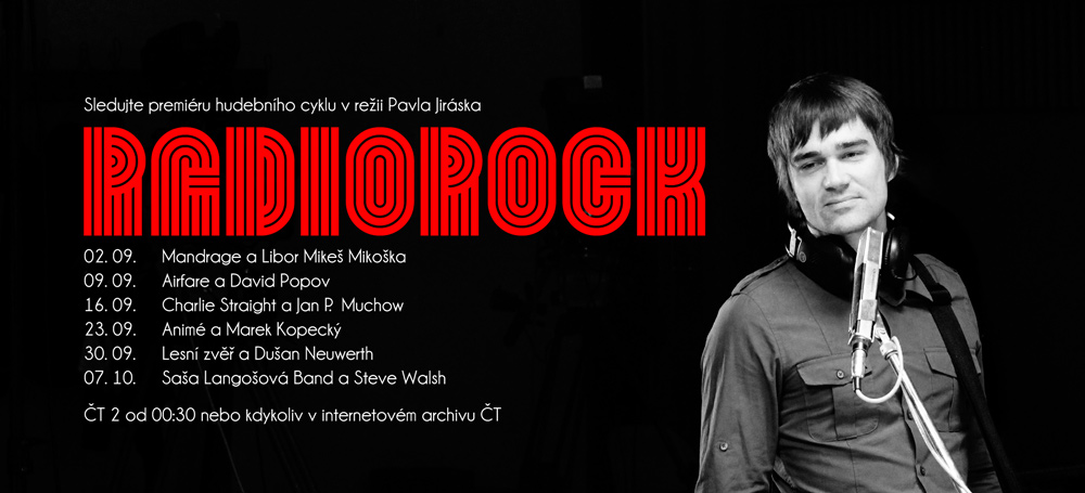 • Druhého září vstupuje na obrazovky České televize nový hudební formát s názvem Radiorock. Setkání rockové kapely s producentem a zákulisí jednoho natáčecího dne v rozhlasovém studiu mohou diváci sledovat vždy v pátek v nočních hodinách na ČT2. Pořad natáčí Centrum divadelní a hudební tvorby brněnského studia ČT. Režie Pavel Jirásek.