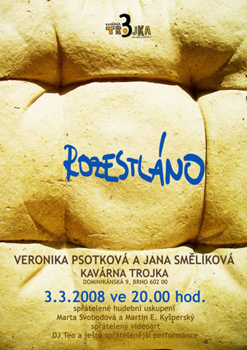 Artová kavárna Trojka si Vás a Vaše přátele tímto dovoluje pozvat na pondělní vernisáž – ROZESTLÁNO. V pondělí 3. 3. 2008.