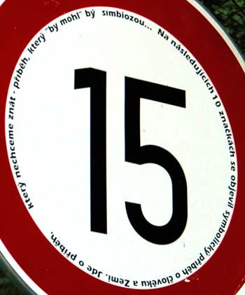 Kolegové a kolegyně, pohybující se na dvou kolech (pěší asi dají přednost nezpevněné cestě), kteří si občas zajedou podkomorským lesem osvěžit se pramenitou vodou z Ríšovy studánky si možná mohli povšimnout (pokud se neřítí nepřiměřenou rychlostí) nezvyklého počinu – neznámý autor zde totiž využil pěti příčných prahů a deseti značek, které na tyto prahy upozorňují, a vyhotovil zde jak sám tvrdí: “Symbolický příběh o člověku a Zemi, příběh který nechceme znát, příběh, který by mohl být symbiózou“. Jestli má pravdu či ne se každý může jít podívat sám, no a jestli se vám bude zdát, že je v tom lese nějaký hluk, tak to asi bude z motorů z nedalekého “okruhu”, no aspoň že ta voda v nedaleké Helenčině studánce je pořád ještě pitná, když už ta voda z Ríšovy už asi pitná není (jak jsem se zrovna dočetl) a dávno není místem, kde nejhlubší je les.