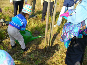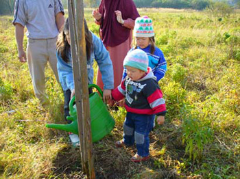 Na pozemku přírodního areálu Sluňákov se v slunném sobotním ránu sešla dvacítka uprchlíků ze zemí bývalého Sovětského svazu (Kazachstánu, Běloruska a Čečenska) společně s absolventy letní školy Agentury rozvojové spolupráce a humanitární pomoci Olomouckého kraje a se členy základní organizace Českého svazu ochránců přírody „Upolín“. Pod odborným dohledem pracovníků firmy Zahrada Olomouc, která zajistila sazenice stromů a potřebnou techniku, se účastníci akce seznámili s technologií sázení