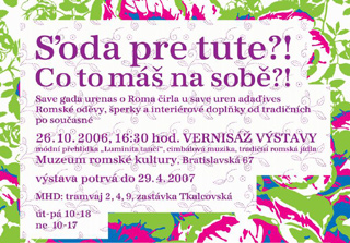 Třpyt, volnost, temperament, rozmanitost, provokace, zručnost…tak by se dala charakterizovat romská móda v průběhu staletí. Výstava potrvá do 29. 4. 2007.